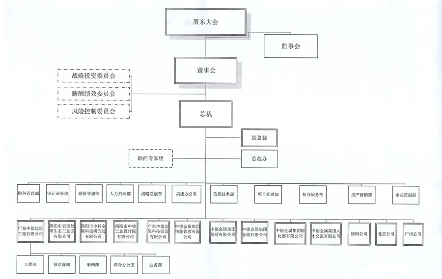 中德金屬集團按“三會(huì )一層”的管理思想,組建了職能完善、結構清晰的組織架構。在經(jīng)營(yíng)層面,以總裁為核心,成立了集團辦公室、戰略發(fā)展部、人力資源部、融資管理部、審計法務(wù)部、財務(wù)管理部、信息技術(shù)部、項目管理部、招商服務(wù)部、房產(chǎn)營(yíng)銷(xiāo)部、企業(yè)策劃部等十一個(gè)核心職能部門(mén)。同時(shí),下轄十三家子公司。