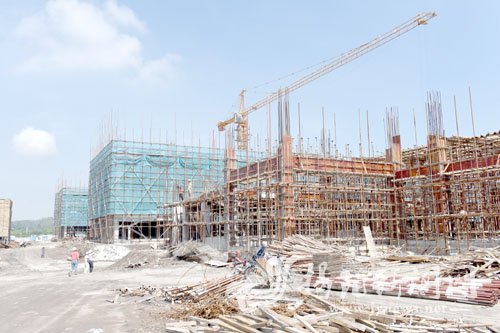 近日,記者來(lái)到中德金屬表面處理中心二期工程施工現場(chǎng),只見(jiàn)一排排樁基屹立,部分廠(chǎng)房已完成樁基礎打樁、檢測,為了保證工期進(jìn)度,施工人員采取各種防暑措施堅持施工,全力以赴確保今年底前完成部分廠(chǎng)房建設、2018年上半年投產(chǎn)。