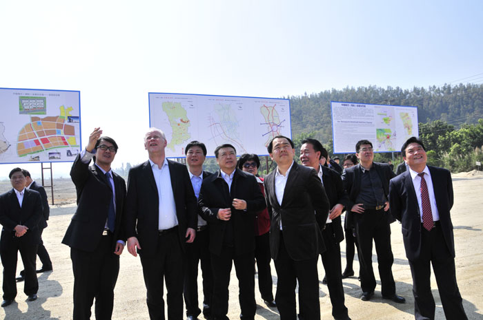 考察團一行首先到達中國南方(揭陽(yáng))金屬生態(tài)城現場(chǎng),市領(lǐng)導陳東,揭東縣領(lǐng)導林炳華為沙爾平先生介紹了金屬城總體的布局,表示金屬城項目建設將按照“一個(gè)中心(產(chǎn)業(yè)聚集中心)、兩個(gè)基地(生產(chǎn)加工基地、貿易物流基地)、三大平臺(科技創(chuàng )新平臺、電子商務(wù)平臺、金融服務(wù)平臺)”的定位進(jìn)行規劃,建設中國“金屬原材料交易中心、金屬產(chǎn)業(yè)研發(fā)設計中心、金屬制品制造中心、金屬機械制造中心、金屬產(chǎn)品銷(xiāo)售中心、金屬行業(yè)人才技工基地、金屬行業(yè)金融中心”七大板塊。隨后,考察團來(lái)到中德產(chǎn)業(yè)大學(xué)園區參觀(guān),考察團先后參觀(guān)了大學(xué)園區建設用地,聽(tīng)取相關(guān)領(lǐng)導介紹大學(xué)園區規劃、布局、生活配套設施和周邊園區建設規劃。