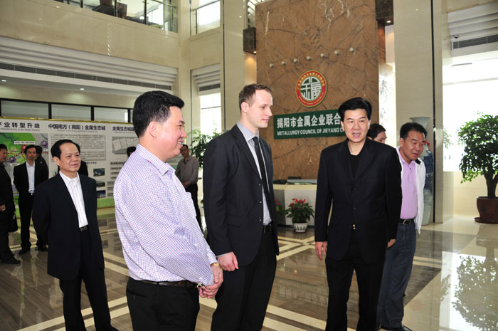 3月18日,德國沙爾平戰略發(fā)展咨詢(xún)有限公司代表杰瑞海德曼參觀(guān)調研揭陽(yáng)市金屬企業(yè)聯(lián)合會(huì ),揭陽(yáng)市政協(xié)副主席、市長(cháng)助理陳定雄,揭陽(yáng)市外經(jīng)貿局局長(cháng)盧培群、揭東區副區長(cháng)林炳華、揭陽(yáng)市金屬企業(yè)聯(lián)合會(huì )執行會(huì )長(cháng)林耿興、林眾偉共同出席座談會(huì )。