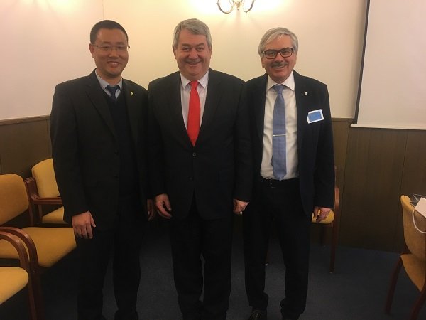 捷克當地時(shí)間2018年2月27日,中德金屬集團常務(wù)副總裁、中國(德國)中小企業(yè)中心總經(jīng)理楊志新與捷克工業(yè)和交通聯(lián)合會(huì )副會(huì )長(cháng)弗朗西斯科•查洛佩斯基一行到捷克眾議院拜訪(fǎng)交流,受到捷克和摩拉維亞共產(chǎn)黨主席、眾議院副議長(cháng)沃伊捷赫 • 菲利普(Vojtech Filip)的熱情接待。