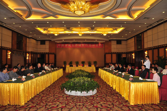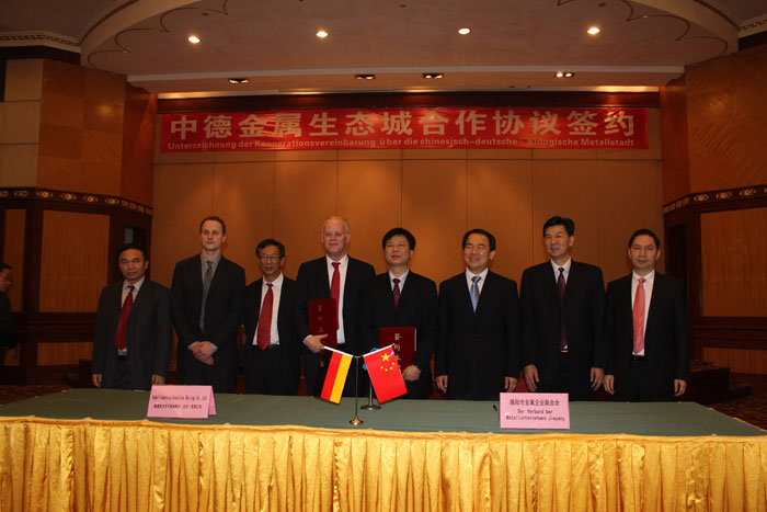 2013年4月27日,德國前國防部長(cháng)、社民黨前主席魯道夫·沙爾平先生一行再次蒞臨揭陽(yáng)市金屬企業(yè)聯(lián)合會(huì )訪(fǎng)問(wèn),并與聯(lián)合會(huì )正式簽訂中德金屬生態(tài)城合作協(xié)議。市領(lǐng)導陳綠平、陳東、黃耿城、陳澄民、陳定雄等與揭陽(yáng)金屬企業(yè)家代表共同出席有關(guān)活動(dòng)。