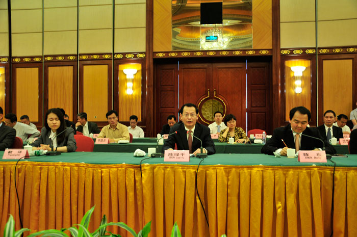 在座談會(huì )上,揭陽(yáng)市市委書(shū)記陳綠平首先代表揭陽(yáng)市委市政府對米斯菲爾德先生一行的到來(lái)表示誠摯的歡迎,對米斯菲爾德先生此次推動(dòng)德國家族企業(yè)基金會(huì )與揭陽(yáng)市金屬產(chǎn)業(yè)的合作表示感謝。他說(shuō),今天的簽約標志著(zhù)中德雙方合作又邁出了新步伐,標志著(zhù)中德金屬生態(tài)城建設有了新的實(shí)質(zhì)性進(jìn)展。這是省委、省政府大力發(fā)展創(chuàng )新型經(jīng)濟、促進(jìn)地方傳統產(chǎn)業(yè)轉型升級的重大舉措,是揭陽(yáng)實(shí)施創(chuàng )新驅動(dòng)戰略的生動(dòng)實(shí)踐,也是中德兩國友好合作結出的新碩果。揭陽(yáng)將把這次戰略合作作為實(shí)施創(chuàng )新驅動(dòng)戰略的頭等大事來(lái)抓,建立運轉順暢的對接協(xié)商機制,認真落實(shí)合作協(xié)議條款,強力推進(jìn)項目各項工作開(kāi)展。