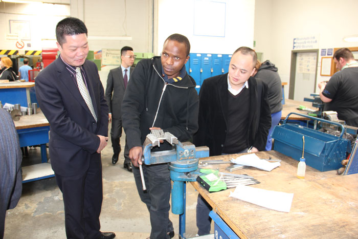 代表團在沙爾平先生的介紹下,深入考察了德國的職業(yè)教育體系,先后參觀(guān)了黑森-圖林根大區工會(huì )下屬的職業(yè)技術(shù)學(xué)校海因里希-克萊因爾學(xué)校,實(shí)地參觀(guān)了德國職業(yè)技術(shù)學(xué)校教學(xué)現場(chǎng)。德國學(xué)生經(jīng)過(guò)培訓后達到的高超技藝,給代表團留下了深刻印象,并立即與相關(guān)部門(mén)達成了職業(yè)教育培訓合作意向,為揭陽(yáng)創(chuàng )辦產(chǎn)業(yè)技術(shù)應用大學(xué)積累了寶貴的合作資源。