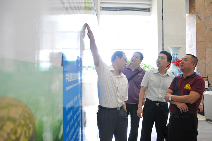 南儲倉儲管理有限公司總裁彭舜章一行參觀(guān)生態(tài)城項目展板