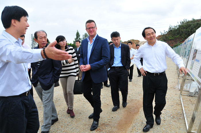 11月4日,鳴樂(lè )集團(香港)有限公司、新榕眼鏡有限公司董事主席艾博哈·穆勒、謝振南專(zhuān)程來(lái)揭實(shí)地調研中德金屬生態(tài)城項目,受到市委副書(shū)記、市長(cháng)陳東的熱情接待。代表團先后考察了中德大道、表面處理中心、籌建中的中德產(chǎn)業(yè)大學(xué)以及德國專(zhuān)家服務(wù)基地,對園區的生態(tài)范式及與德合作理念予以高度評價(jià),并表示:“非?春庙椖堪l(fā)展前景,希望在接下來(lái)尋找合作契機,實(shí)現共贏(yíng)”。
