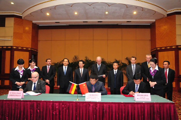11月19日下午,德國RSBK戰略咨詢(xún)交流有限公司總裁魯道夫•沙爾平率德國企業(yè)家代表團蒞揭訪(fǎng)問(wèn),與揭陽(yáng)市金屬企業(yè)聯(lián)合會(huì )就中德金屬生態(tài)城項目對接進(jìn)行洽談,雙方在榕江大酒店成功舉行了系列項目合作協(xié)議簽約活動(dòng)。德國代表團還于20日下午趕赴廣州,出席中德金屬生態(tài)城駐廣州辦事處揭牌儀式。省政協(xié)副主席、省知識產(chǎn)權局局長(cháng)陶凱元,市委書(shū)記、市人大常委會(huì )主任陳綠平,省政府副秘書(shū)長(cháng)劉曉捷,市委副書(shū)記、市長(cháng)陳東等領(lǐng)導出席了活動(dòng)。