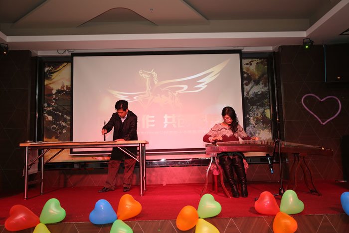 緊接著(zhù),集團領(lǐng)導為年度優(yōu)秀職工頒發(fā)榮譽(yù)證書(shū)及獎金,肯定他們?yōu)楣舅龅呢暙I,同時(shí)激勵在座員工朝著(zhù)2014年共同奮進(jìn)。隨后,由公司各部門(mén)精心編排的節目一一登臺,潮曲對唱、古箏彈奏、勁歌熱舞等表演精彩紛呈,引得現場(chǎng)陣陣掌聲;4個(gè)穿插于表演期間的抽獎活動(dòng)更是將現場(chǎng)的活動(dòng)氣氛推向高潮。此刻,笑語(yǔ)聲、祝福聲、喝彩聲匯成歡樂(lè )的海洋,讓全體員工備感家庭的關(guān)懷與前進(jìn)的動(dòng)力,努力為集團的蓬勃發(fā)展添磚加瓦。