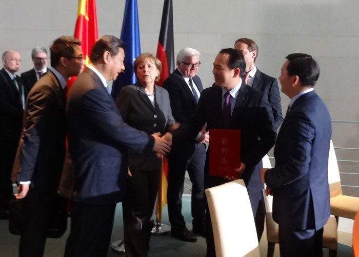 國家主席習近平在訪(fǎng)問(wèn)德國期間,與德國總理默克爾共同發(fā)表《建立中德全方位戰略伙伴關(guān)系的聯(lián)合聲明》,并見(jiàn)證了涉及汽車(chē)、信息化、金融、節能環(huán)保等多個(gè)領(lǐng)域的中德雙邊合作文件的簽署。簽約項目中“中德資源再生基地”項目來(lái)自廣東。作為此次簽約的10個(gè)項目中唯一涉及節能環(huán)保的項目,“中德資源再生基地”落戶(hù)揭陽(yáng),由揭陽(yáng)市中德金屬集團、廣東省廣晟資產(chǎn)經(jīng)營(yíng)有限公司和德國歐綠保集團三方共建,是落戶(hù)在廣東揭陽(yáng)的中德金屬生態(tài)城的關(guān)鍵項目。