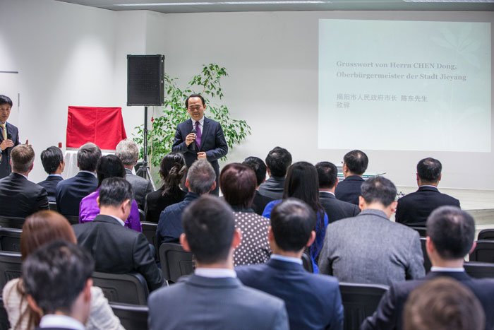 3月31日,揭陽(yáng)市金屬企業(yè)聯(lián)合會(huì )駐慕尼黑代表處正式揭牌成立。中國駐慕尼黑總領(lǐng)事朱萬(wàn)金,市委副書(shū)記、市長(cháng)陳東,德國巴伐利亞州經(jīng)濟部對外經(jīng)濟司亞太處處長(cháng)施安明 (Armin Schwimmbeck)出席儀式并致辭。