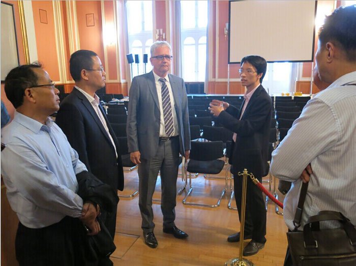 17日上午,代表團到訪(fǎng)德國洪堡大學(xué)研究院,詳細了解Adlershof科技園的規劃進(jìn)程。WISTA管理公司的建筑子公司主管熱情接待了代表團一行,并就園區的運作模式、規劃瓶頸、政府支持等方面進(jìn)行了深入介紹,為代表團在中德金屬生態(tài)城的規劃領(lǐng)域提供良好借鑒。