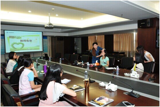 鄭小姐通過(guò)現場(chǎng)化妝示范展開(kāi)培訓,并從第一步護膚到描眉、畫(huà)眼線(xiàn)、上唇彩等注意事項做了詳細的解說(shuō)。女性員工在觀(guān)摩示范的同時(shí),不時(shí)向培訓師詢(xún)問(wèn)了化妝品牌、著(zhù)裝打扮、配飾搭配等方面的問(wèn)題。鄭小姐結合自身經(jīng)驗,——做了細致的解答。整場(chǎng)培訓內容切合實(shí)際,氣氛輕松活潑,贏(yíng)得在場(chǎng)員工的熱烈掌聲。此外,她給在座員工傳閱了《人影攝像化妝指南》一書(shū),通過(guò)全面的化妝理論知識,讓學(xué)員對職場(chǎng)妝扮有了更為深入的了解。