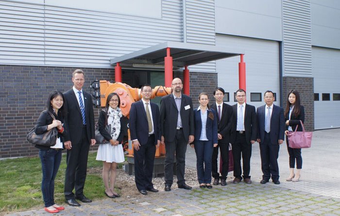 代表團還深入Grunewald模型制造公司的鑄造車(chē)間,現場(chǎng)觀(guān)摩供應大型汽車(chē)生產(chǎn)商的先進(jìn)汽車(chē)零部件手工鑄鐵模型。隨后,代表團移步參觀(guān)科技園,并到訪(fǎng)威斯特法倫州應用科技大學(xué),與該校的Alfred Schoo教授就北威州高校體制交流洽談。在參觀(guān)了學(xué)校機械專(zhuān)業(yè)學(xué)生的機電一體化試驗臺后,代表團滿(mǎn)滿(mǎn)的日程暫告一段落。