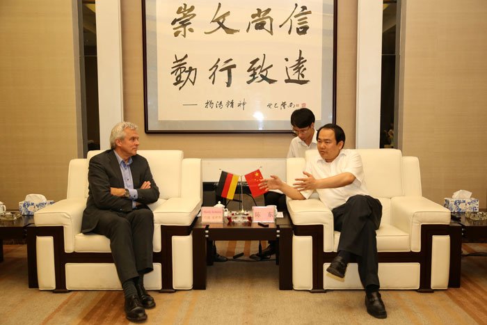 2014年7月24日至25日,德國維斯塔(WISTA)公司總裁哈迪·史密斯(Hardy Schmitz)一行來(lái)揭考察中德金屬生態(tài)城項目。揭陽(yáng)市委副書(shū)記、市長(cháng)陳東會(huì )見(jiàn)了哈迪·史密斯一行,雙方就加強園區管理合作等事宜進(jìn)行深入交流,并達成一攬子工作細則。