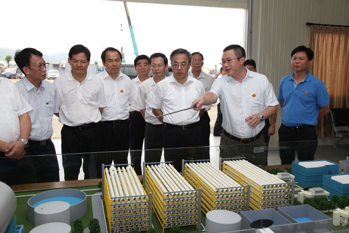 胡春華一行參觀(guān)表面處理中心項目展廳,聽(tīng)取污水“零排放”技術(shù)介紹