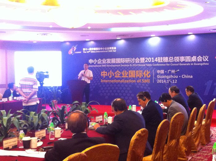 作為廣東國際合作與交流的典型,中德金屬集團在促進(jìn)中小企業(yè)“走出去”與“引進(jìn)來(lái)”相結合和引導走新型工業(yè)化的發(fā)展道路等方面做出良好示范。12日下午,中德金屬集團應邀參加了第十一屆中博會(huì )中小企業(yè)發(fā)展國際研討會(huì )暨2014駐穗總領(lǐng)事圓桌會(huì )議。楊志新副總裁向與會(huì )代表分享了中德金屬生態(tài)城對德合作的成功經(jīng)驗以及發(fā)展生態(tài)環(huán)保的有效做法,得到在場(chǎng)企業(yè)的高度認可與積極響應。