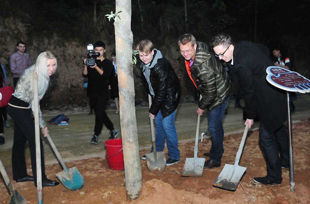 來(lái)華交流班與揭陽(yáng)有關(guān)領(lǐng)導在萬(wàn)畝森林公園共植友誼之樹(shù)