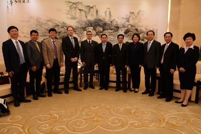 朱小丹對德國客人的到來(lái)表示歡迎。他指出,埃斯林根應用科技大學(xué)作為德國具代表性的“雙元制”高等職業(yè)院校,與廣東工業(yè)大學(xué)在揭陽(yáng)共建“雙元制”職業(yè)教育大學(xué),將成為廣東乃至國內首個(gè)與國外應用科技大學(xué)合作辦學(xué)項目。廣東當前正處于加快轉型升級的關(guān)鍵階段,高技能人才包括技術(shù)工人、技師、工程 師等嚴重短缺,非常希望學(xué)習借鑒德國“雙元制”職業(yè)教育模式和產(chǎn)業(yè)發(fā)展經(jīng)驗,將德國“雙元制”職業(yè)教育理念和辦學(xué)模式復制到廣東,不斷提升我省高等職業(yè)教育水平,為我省產(chǎn)業(yè)轉型升級培養出更多高技術(shù)、高技能人才。希望通過(guò)雙方共同努力,建立面向產(chǎn)業(yè)應用的研發(fā)合作基地,在廣東乃至全國起到示范引領(lǐng)作用,成為中德合作的亮點(diǎn)。省政府將調動(dòng)各方面力量,加快推進(jìn)合作辦學(xué)各項工作。