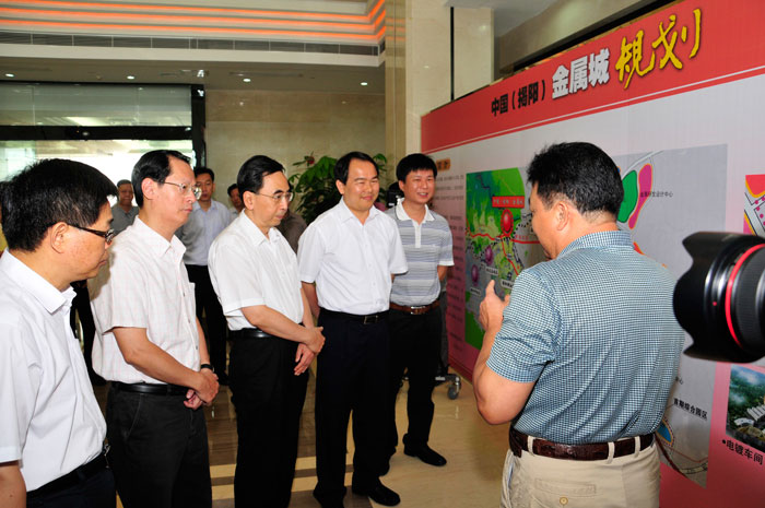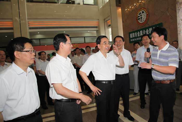 陳東市長(cháng)簡(jiǎn)要的介紹了揭陽(yáng)市近年來(lái)金屬產(chǎn)業(yè)發(fā)展和金屬產(chǎn)業(yè)轉型升級的概況,吳克東會(huì )長(cháng)詳細介紹揭陽(yáng)金屬城建設、規劃、開(kāi)發(fā)的情況,隨后朱小丹省長(cháng)觀(guān)看了《產(chǎn)業(yè)復興,輝煌崛起——揭陽(yáng)金屬產(chǎn)業(yè)20年巡禮》宣傳片,他對揭陽(yáng)金屬產(chǎn)業(yè)自主創(chuàng )新模式給予充分肯定,希望揭陽(yáng)繼續發(fā)揮金屬產(chǎn)業(yè)集群的優(yōu)勢,不斷提升自主創(chuàng )新,打響自主品牌,培養龍頭企業(yè),為加快產(chǎn)業(yè)轉型升級,建設幸福廣東作出新貢獻。
