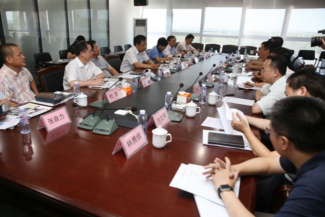 周孟波一行與陳澄民等市領(lǐng)導在空港經(jīng)濟區建立倉儲物流中心進(jìn)行座談