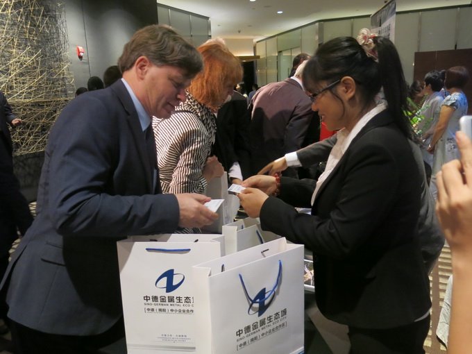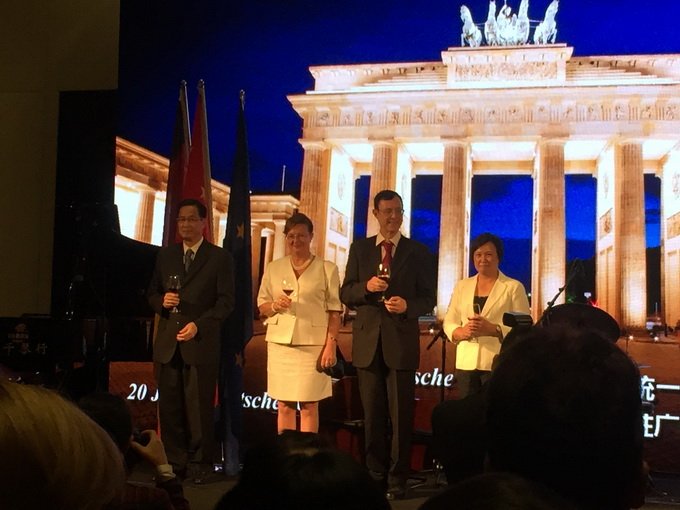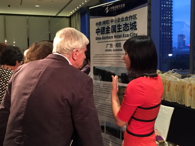 10月12日,受德國駐廣州領(lǐng)事館的邀請,中德金屬集團副總裁晉衛東攜集團招商、營(yíng)銷(xiāo)等部門(mén)主要人員參加了德國統一25周年德國國慶日活動(dòng);顒(dòng)現場(chǎng)來(lái)自中德兩國的各個(gè)協(xié)會(huì )、機構及企業(yè)代表借藝術(shù)形式進(jìn)行商務(wù)、文化交流。作為華南區首個(gè)中德中小企業(yè)合作區,中德金屬生態(tài)城項目一直以來(lái)得到了德國駐廣州總領(lǐng)館的大力支持。呂海慕總領(lǐng)事在致辭中提出,希望能進(jìn)一步促進(jìn)中德之間的合作,對揭陽(yáng)的中德合作成果表示充分肯定。廣東省政府副秘書(shū)長(cháng)羅娟參加了活動(dòng)并致辭,她提出,廣東省政府將繼續支持中德金屬生態(tài)城這一中德合作平臺,促進(jìn)廣東與德國的合作。
