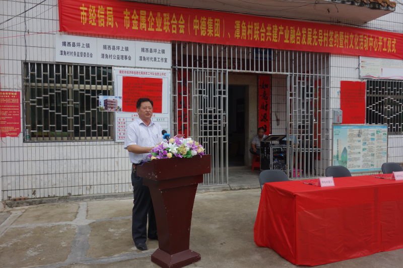 根據揭陽(yáng)市委、市政府關(guān)于動(dòng)員市社會(huì )組織參與精準扶貧的指示精神,9月6日上午,市經(jīng)信局、市金屬企業(yè)聯(lián)合會(huì )、中德金屬集團與揭西縣坪上鎮潭角村聯(lián)合舉行共建產(chǎn)業(yè)融合發(fā)展先導村簽約暨村文化活動(dòng)中心開(kāi)工儀式,爭取把該村打造成揭陽(yáng)互聯(lián)網(wǎng)+精準扶貧、精準脫貧的示范村,推動(dòng)貧困戶(hù)早日脫貧致富。